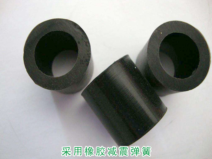 篩分機在篩分過程中如果采用鋼絲減震彈簧會發生彈簧與支座之間發生摩擦產生噪音,所以可改成橡膠材質的減震彈簧。