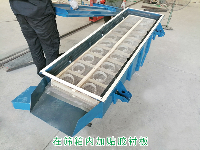 三.在篩箱內加貼膠襯板